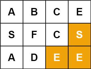 Input: board = [["A","B","C","E"],["S","F","C","S"],["A","D","E","E"]], word = "SEE"