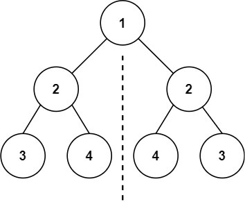 Given the root of a binary tree, check whether it is a mirror of itself (i.e., symmetric around its center).